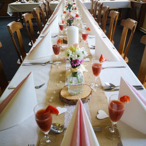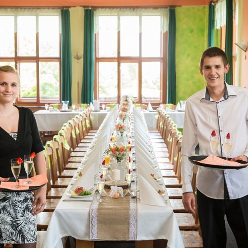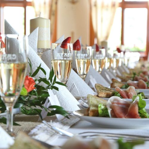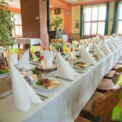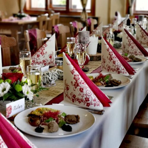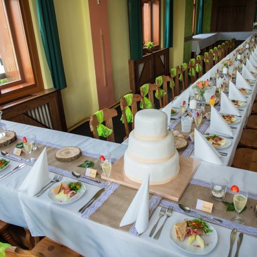 V prostorách naší krásné restaurace je možnost uspořádat svatební hostinu nebo jakoukoliv oslavu. Na přání sestavíme svatební tabuli, připravíme raut, zajistíme živou nebo reprodukovanou hudbu.